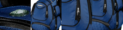 - Front zippered pocket with organizer panel Comfortable ergonomic padded straps Padded